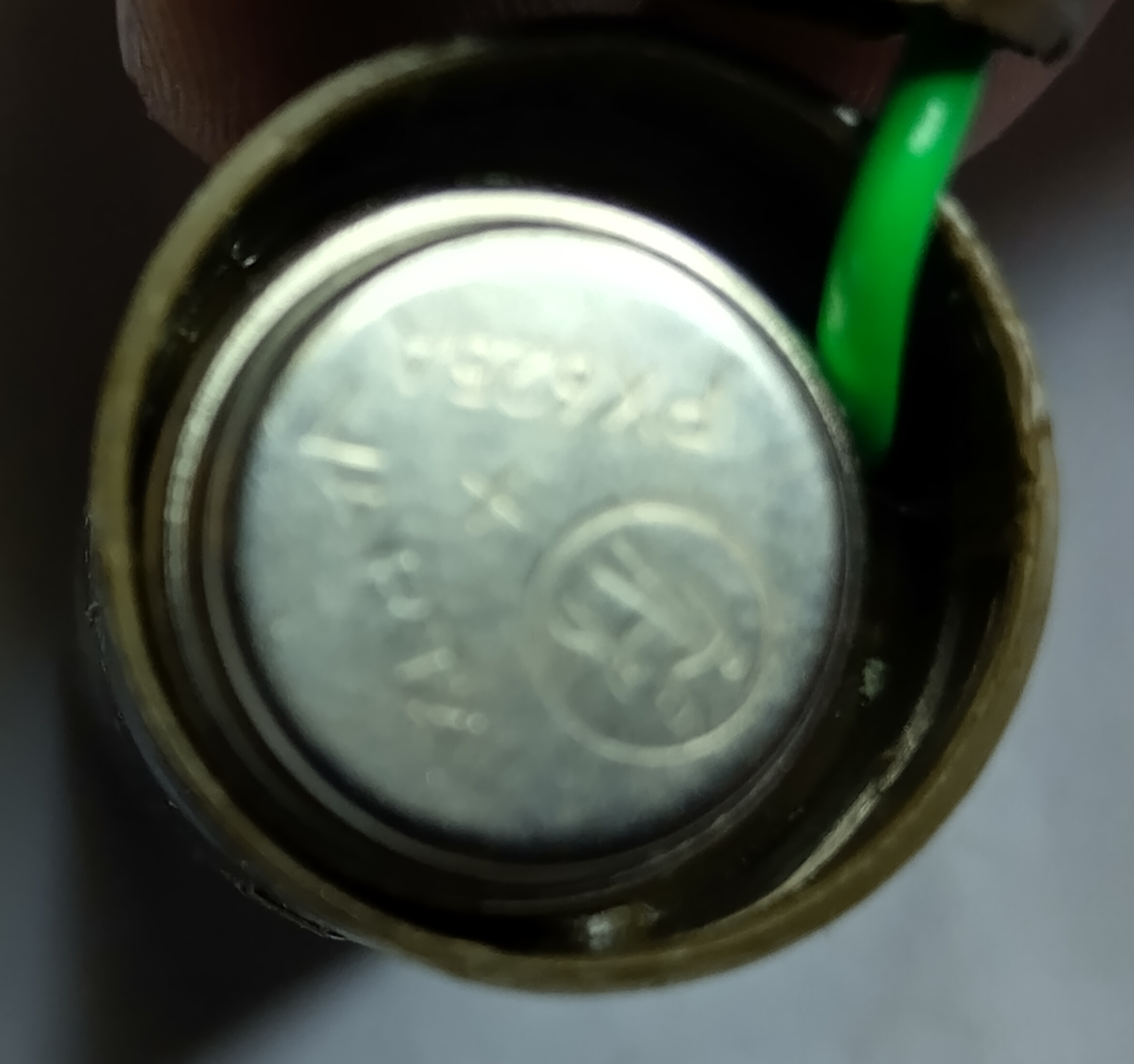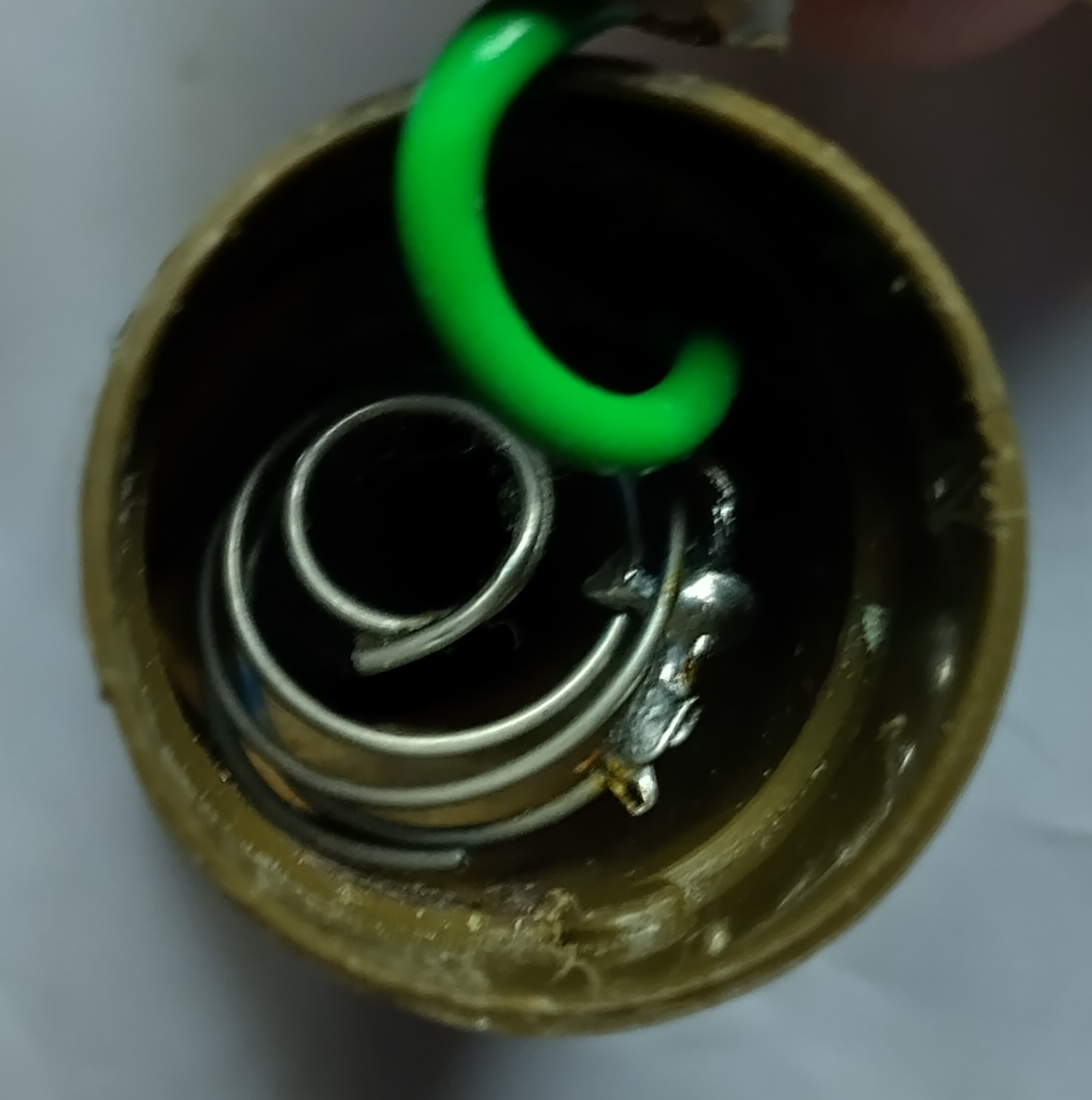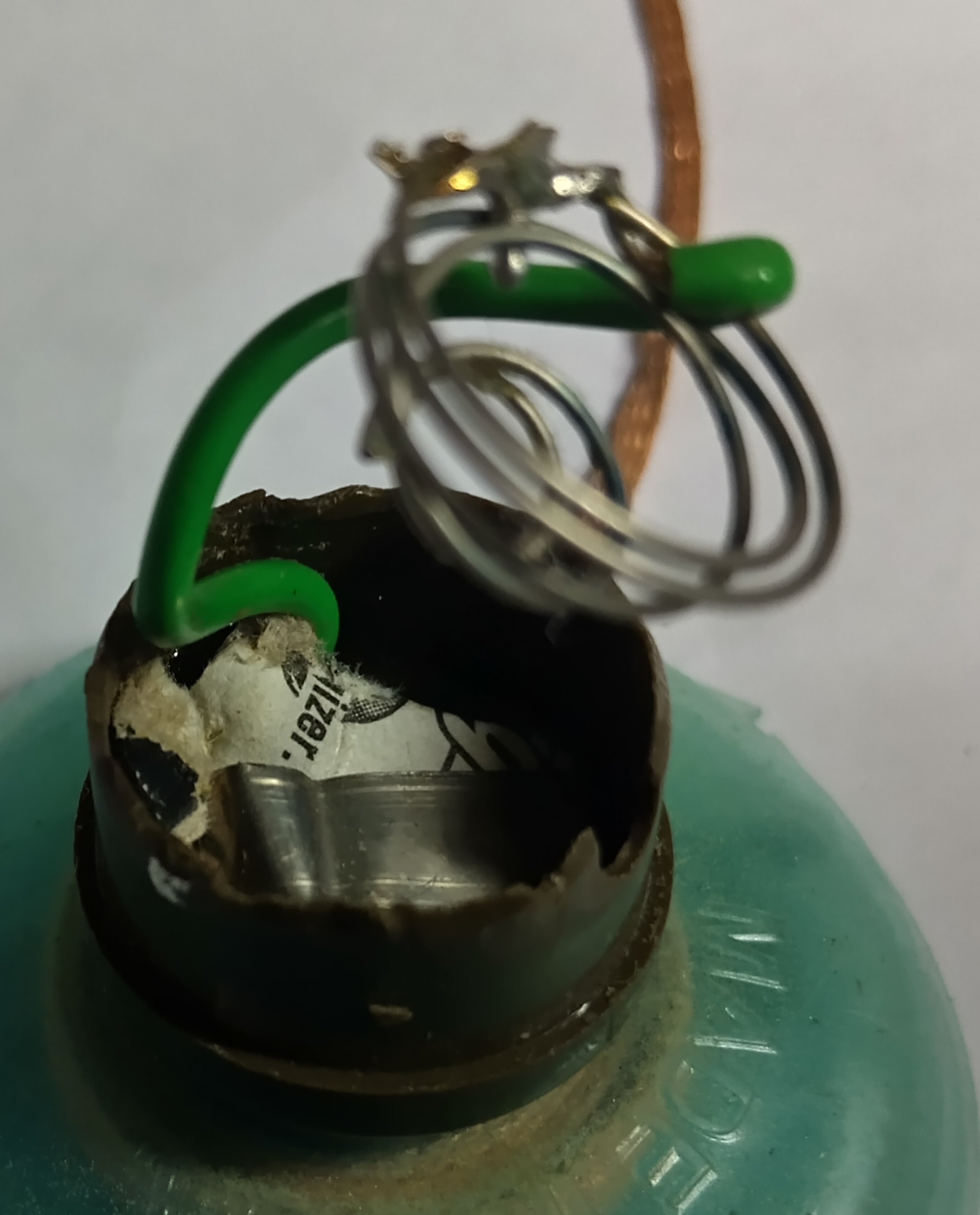 uiteinde van een veertje uit een batterijhouder. Isoleer de dikke en