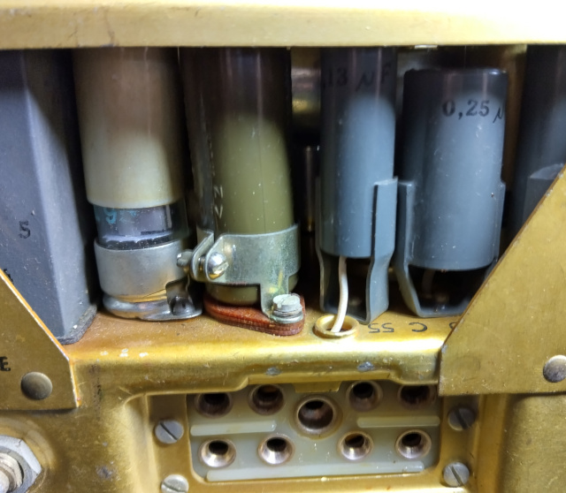 Achterzijde ontvanger GRC-9 batterij is zichtbaar tussen eindbuis en