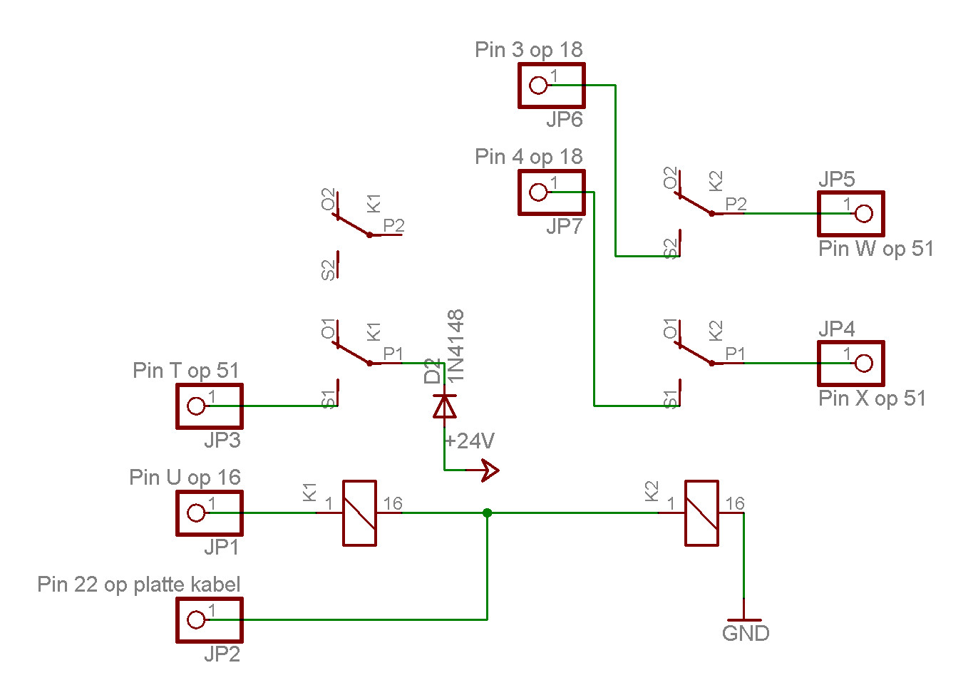 Het signaal “relais” staat op pin “U” van